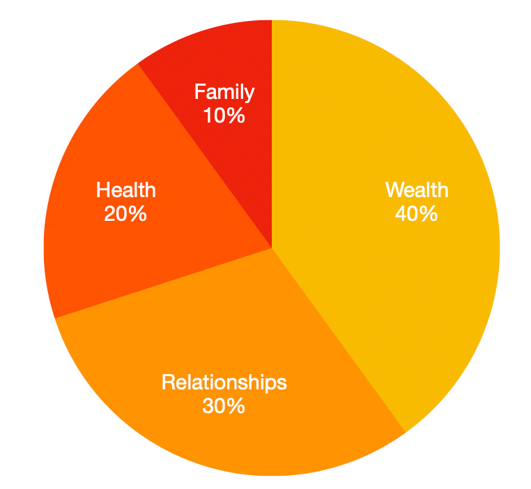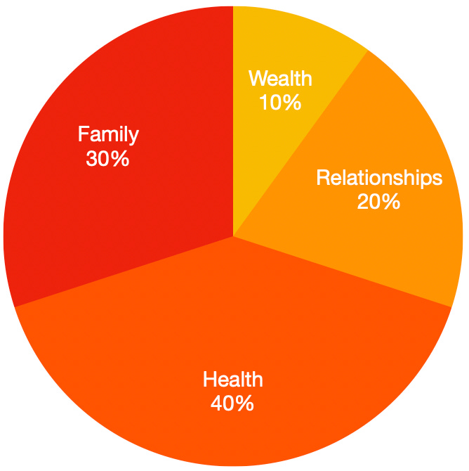 The math: 40% Wealth, 30% Relationships, 20% Health, 10% Famil