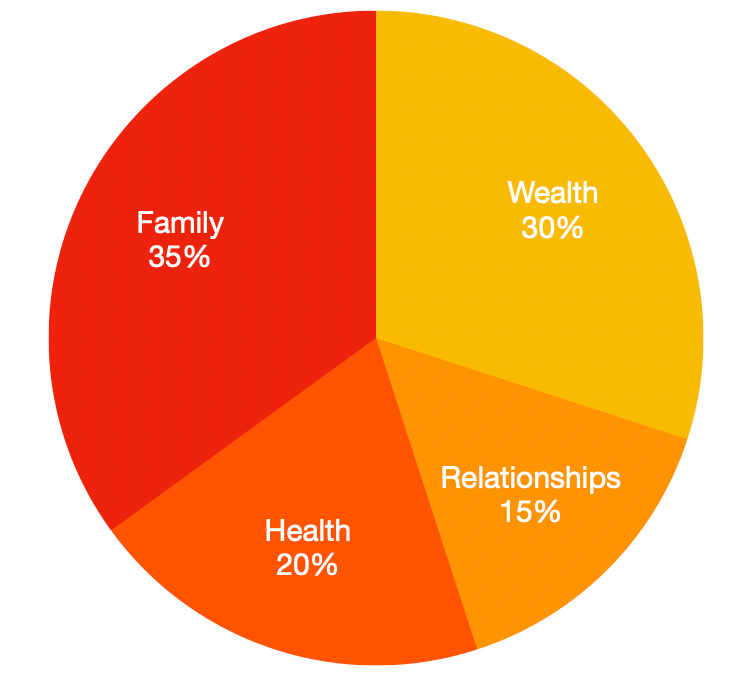 The math: 35% Family, 30% Wealth, 20% Health, 15% Relationships